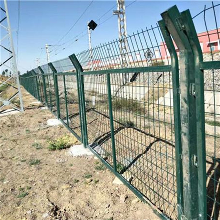 鐵路防護(hù)柵欄用途:高速公路、鐵路垃圾填埋場試驗(yàn)場地、鐵路封閉、高速公路護(hù)欄、開發(fā)區(qū)圍界 場區(qū)圍網(wǎng)、體育場圍欄、小區(qū)防護(hù)。