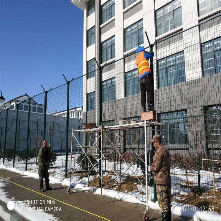 2、監獄隔離網設計要求整體連貫一致,框網方正,對角線誤差不大于2cm。監獄安全網圍欄網片安裝離地距離5-8cm ,框網與立柱采用螺栓固定邊耳式連接網頁每邊與立柱連接點不少于六處。