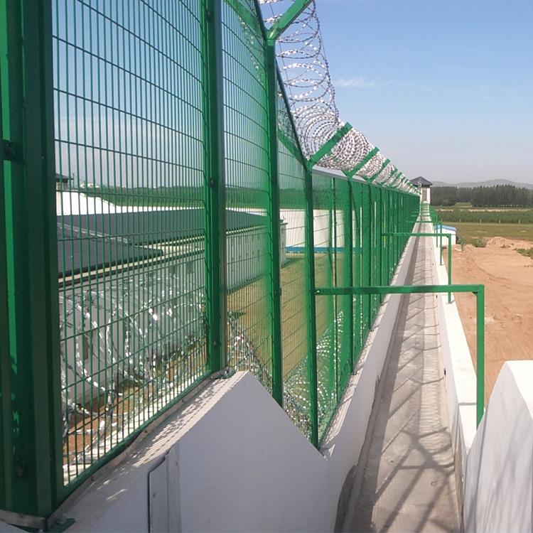 監獄看守所巡邏道鋼網墻是高度戒備場所建設不可缺少的部分,可以用來加高圍墻高度,防止服刑人員攀爬,也因其透視性好、安全度高,可以作為巡視墻使用,便于對服刑人員的監管。