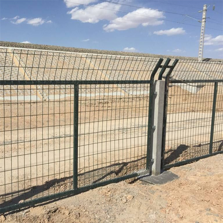 鐵路護欄網(wǎng)又稱鐵路防護柵欄是用于鐵路兩側(cè)的隔離防護設(shè)施起隔離和防護作用的護欄網(wǎng)產(chǎn)品,應(yīng)用于高速公路、鐵路、高鐵、大型場地安全防護用。采用高強度低碳鋼絲、鋁鎂合金絲,或鍍鋅絲編織焊接而成,具有組裝靈活、結(jié)實耐用的特點,既可以制作成護欄網(wǎng)墻使用,也可以用做臨時隔離網(wǎng),在使用中只需采用不同的立柱固定方式便可安裝(立柱還包括水泥柱子),產(chǎn)品防腐 防曬 防水表面處理有、電鍍、熱鍍、噴塑、浸塑的方式。