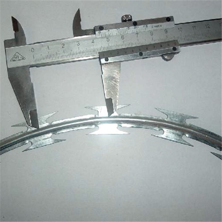 刀片刺繩監獄防護網刀片刺網材料有低碳鋼絲、冷扎熱鍍鋅金屬薄板,不銹鋼板材,不銹鋼線等:加工工藝:由熱鍍鋅鋼板或不銹鋼板金屬薄板沖壓模具出尖銳的刀塊狀,高支撐力鍍鋅鐵絲也許不銹鋼線做銅芯電纜組成的阻絕元器件。因為刀片刺繩造型相互不容易觸碰,因此能抵達很好的安全防護隔絕功效,還具備好看、經濟發展有效、防阻功效好、工程施工方便、長壽命等出色特點,包裝采用內防潮紙外蛇皮口袋,原材料采用Q235碳素鋼,網眼:50*100毫米、70*150mm等,絲距:3.8-6mm,管經:48mm*48mm、60mm*60mm*3mm等,非常規范型號規格可依據用戶需求訂制。