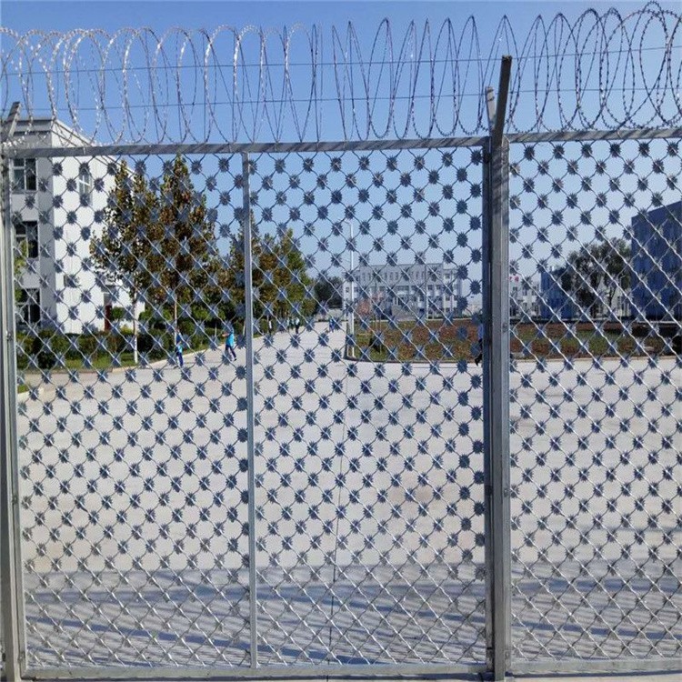 欄網(wǎng)的Y形柱還裝備了不銹鋼刀片刺網(wǎng),并對(duì)其外表進(jìn)行了噴涂。常見(jiàn)的是深綠色噴涂和銀灰色噴涂,看起來(lái)高端,簡(jiǎn)單而美麗,并且能夠