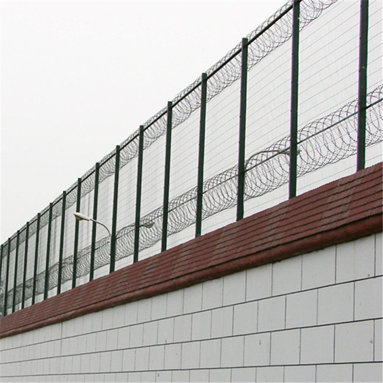 監(jiān)獄防護網(wǎng)是一種新型防護網(wǎng),也叫Y型刀片護欄網(wǎng),它由銳利尖角鍍鋅鋼板或不銹鋼薄板做成刀片刺網(wǎng),鋼絲做芯線組合而成的監(jiān)獄圍墻防護利器!監(jiān)獄刀片護欄網(wǎng)具有嚇阻、防翻越等效果。監(jiān)獄刀片護欄網(wǎng)可平地安裝,也可在圍墻上二次安裝,有效防止攀逃。直刺式刺網(wǎng)隔離帶,是用柱體和普通刺繩橫、縱、斜向交叉綁定成刺網(wǎng)隔離帶。 監(jiān)獄刀片護欄網(wǎng)的材質(zhì)堅硬,具有高強度,高張力,造型設計獨特,不宜觸摸,因而能達到極好的防護隔離效果。
